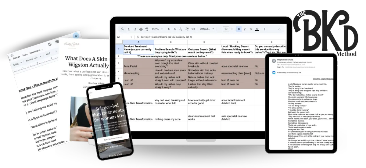 A 12-week programme for established beauty professionals who are done relying on Instagram and ready to build a system that actually gets clients through the door.